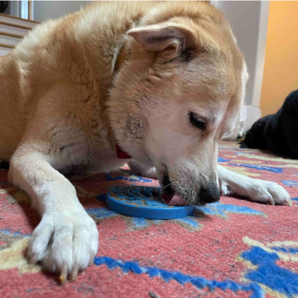 Experience the benefits of a lickmat and slow feeder with the compact Air Nylon enrichment coin, perfect for snacking or short travels, providing a medium level of enrichment.