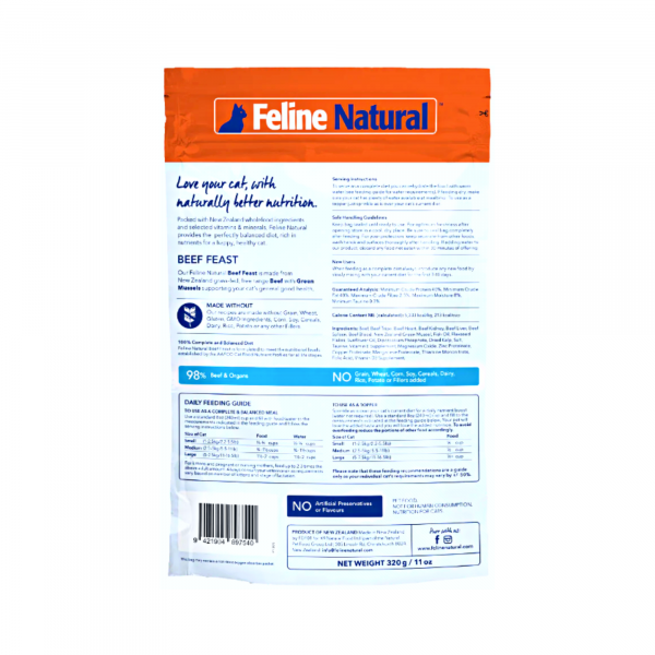 Made in New Zealand with grass-fed, free-range Beef, you can be assured your cat is getting the rich and nourishing proteins and fats needed for a natural source of energy to truly thrive, while still being a great single-source diet for your fussy feline.