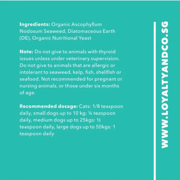 A dental supplement powder formulated with wild-harvested Ascophyllum Nodosum Seaweed with added nutritional yeast, and diatomaceous earth that naturally enhance dental health by reducing plaque, tartar, and bad breath - just simply add to food!