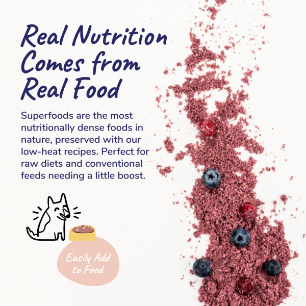 All-natural, organic wholefood blend that provides antioxidant power, provides bladder/urinary support, and aids in immunity. Stay berry healthy!