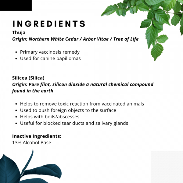 Assists in the removal of associated vaccine side effects without removing any vaccine benefits.