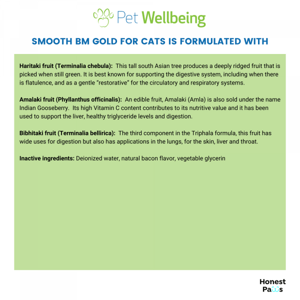 Natural herbal supplement promoting gastrointestinal health for easier elimination and softer stools such as constipation for cats.