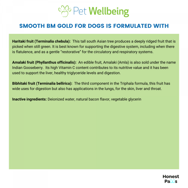Natural herbal supplement promoting gastrointestinal health for easier elimination and softer stools such as constipation for dogs.