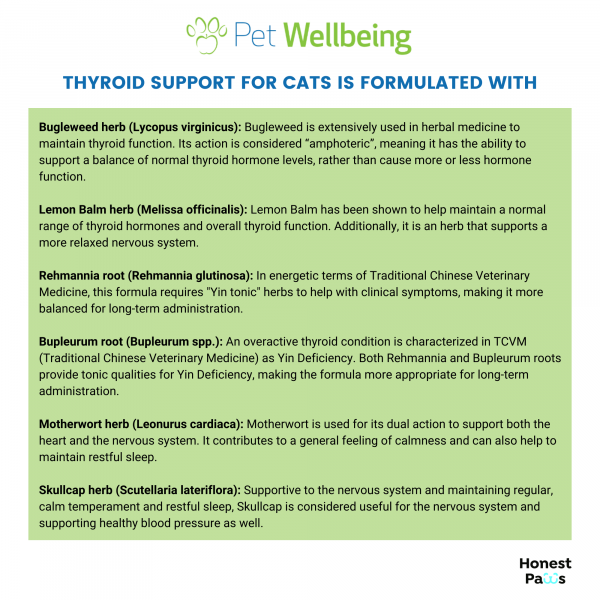 Natural herbal supplement promoting normal function and balance of thyroid gland for hyperthyroidism in cats.